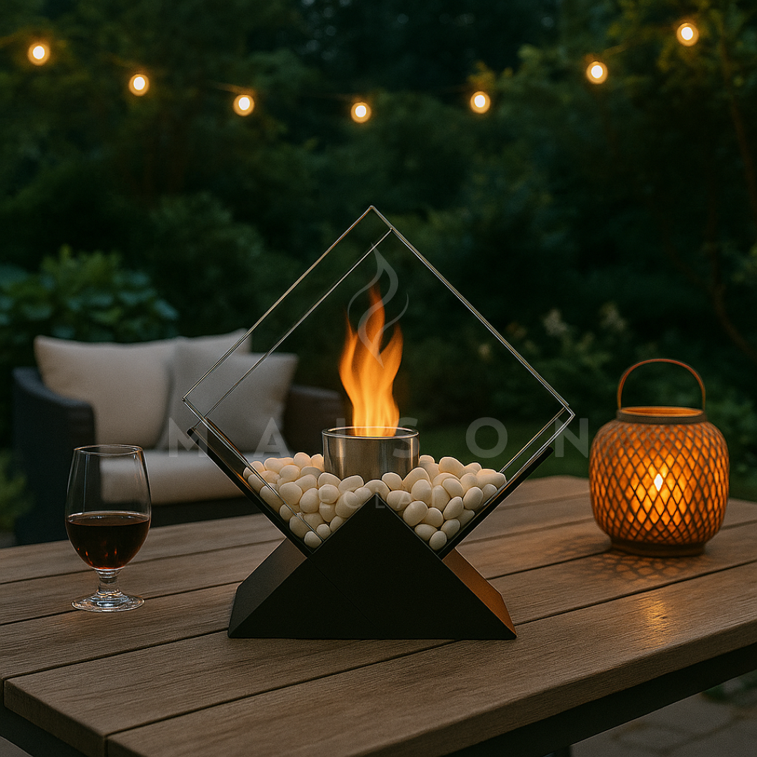 Véritable objet design, elle trouve naturellement sa place sur une table, un buffet, une table basse ou une terrasse abritée. Sans installation complexe ni branchement électrique, elle permet de profiter du charme du feu en toute simplicité, dans un format compact et contemporain.