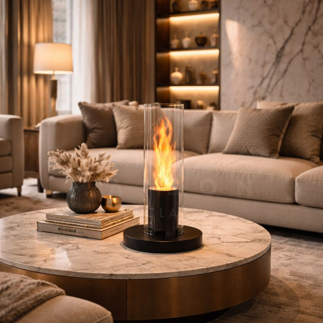 La cheminée de table Maison Éclat™️ est conçue pour transformer instantanément l’atmosphère de votre intérieur. Sa flamme élégante et visible crée un jeu de lumière vivant qui apporte chaleur visuelle, caractère et raffinement à votre décoration.