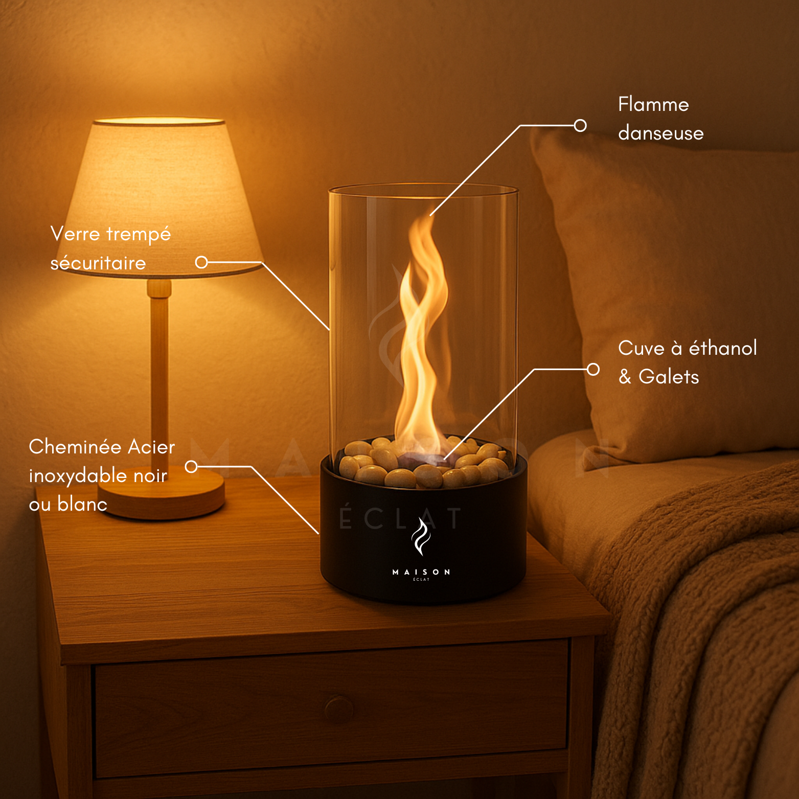Maison Éclat allie esthétique et confort : sa cheminée de table compacte et moderne apporte chaleur et style à tous les intérieurs.